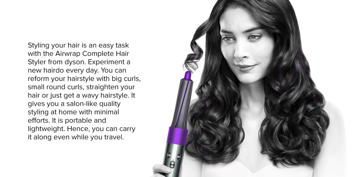 - It attracts and wraps hair using only air and Dyson air wrap complete – for all types of hair, fine and limp hair or for frizz prone hair